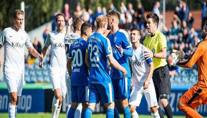 وكان فريق ميبن متقدما 2-صفر في ضيافة منافسه كارل زايس يينا قبل أن تحدث الواقعة في الدقيقة 57.