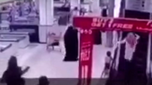 ووثقت كاميرات المراقبة الواقعة، فبينما كان الطفل متمسكا بأحد أطراف السلم المتحرك، الذي سحبه لأعلى، وفقاً لقناة العربية، وسط ذعر المتواجدين، تمكن المواطن من الإمساك به من أعلى السلم في الوقت المناسب قبل أن يسقط على الأرض.