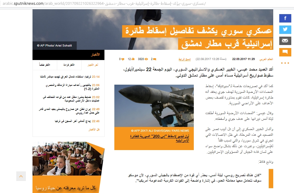 وكالة روسية : ” عسكري سوري يكشف تفاصيل إسقاط طائرة إسرائيلية قرب مطار دمشق ” !