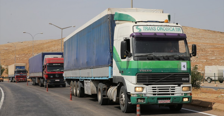 وتوجهت الشاحنات إلى سوريا، عبر معبر جيلوة غوزو، في ولاية هطاي جنوبي تركيا، المقابل لمعبر باب الهوى السوري.