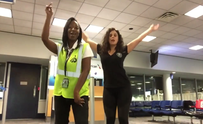 قامت امرأة تقطعت بها السبل في مطار نورث كارولاينا، باستغلال وجودها في المطار لتصوير فيديو راقص بمساعدة العاملين في المطار.