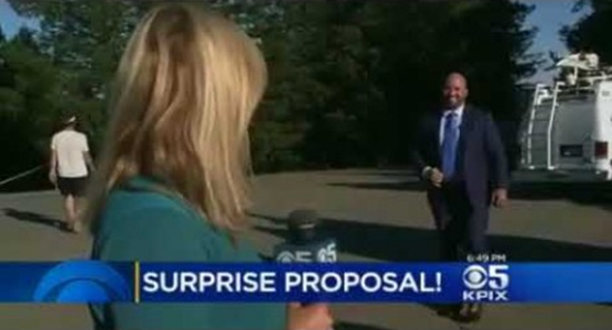 في مشهد مؤثر، فوجئت مراسلة تلفزيونية من ولاية #كاليفورنيا الأمريكية بحبيبها يعرض عليها الزواج أثناء بثها تقريراً على الهواء مباشرة.