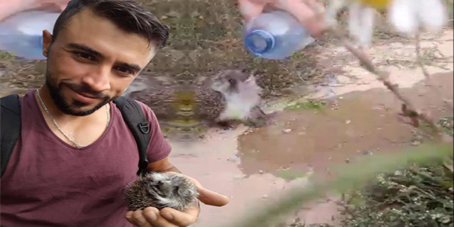 صحيفة نمساوية : لاجئ سوري ينقذ قنفذاً من الموت عطشاً ( فيديو )