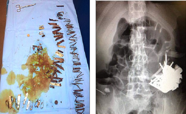 وبعد 8 أشهر، نُقل المريض إلى المستشفى للسبب نفسه، ثم خضع للجراحة، حيث وجد الأطباء آثارا للمسامير والسكاكين والأدوات الحادة الأخرى في بطنه. كما زار المستشفى 3 مرات أخرى بين عامي 2013 و2016.