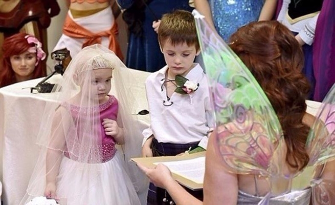 ووفق ما نقلت صحيفة القدس العربي عن صحيفة “صن” البريطانية، فإن إيلا بوليززي البالغة من العمر 3 سنوات تم تزويجها إلى صديقها المقرب سوليفان تيري البالغ من العمر 5 سنوات، في حفل رمزي، وصفته الصحيفة بـ “المبهج”.