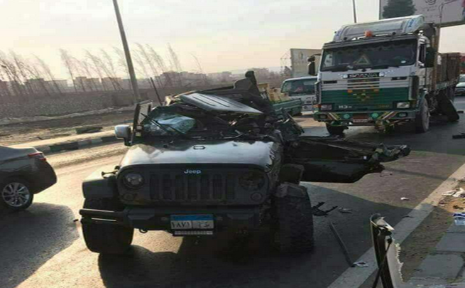 وأظهرت الصور سيارة المخرج الحصري وقد تهشم الجزء العلوي منها والخلفي بسبب الحادث الذي وقع بعد انفجار إطار سيارته من نوع جيب، وفقاً لشبكة إرم نيوز، وتعرضها لاصطدام من سيارة أخرى كانت قادمة من الخلف.