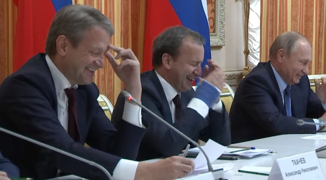 أثار وزير الزراعة الروسي ألكسندر تكاتشوف ضحك الرئيس فلاديمير بوتين والحكومة وهو يشرح كيف تصدر ألمانيا لحم الخنزير إلى مجموعة من الدول.