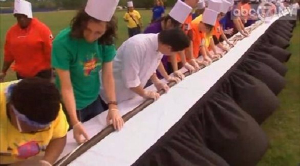 وقال باتريك سافولسكيس، المدير التنفيذي لكلية بيرتشيز وفق ما ذكرت شبكة ” 24 ” الإماراتية: “في العام الماضي، جاء الشيف جيث إلى الجامعة، وقام بإعداد شطيرة سوشي طولها 50 قدماً في قاعة الطعام التابعة للكلية. وعندها خطرت فكرة لنا بإعداد شطيرة أطول منها بكثير.”