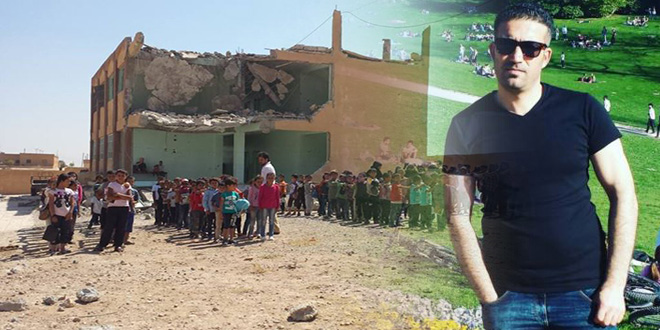 عاد مدرس سوري لجأ إلى ألمانيا قبل سنوات، إلى مدينة الرقة، واجتمع مع طلابه من لبدء عام دراسي جديد في باحة مدرسية حفرت أرضها بصواريخ الطائرات الحربية.