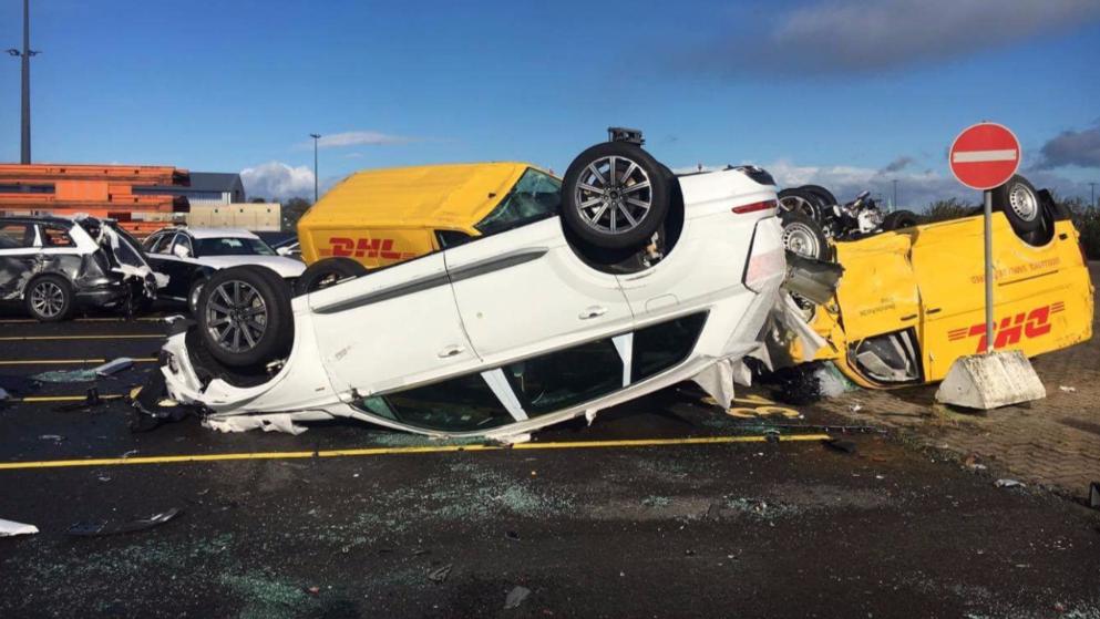 ألمانيا : سائق ” رافعة ” مخمور يحطم عشرات السيارات و يتسبب بخسائر بالملايين ! ( صور )