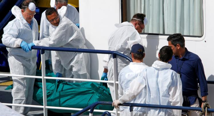 وقالت المهمة صوفيا البحرية التابعة للاتحاد الأوروبي على صفحتها على فيسبوك إن سفينة إسبانية انتشلت الجثث و64 ناجيا من قارب مطاطي كان يغرق. (REUTERS)