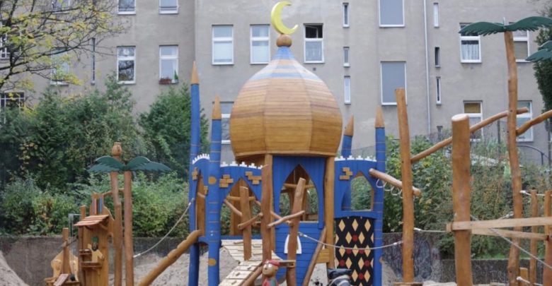 وقالت صحيفة “بيلد” الألمانية، الإثنين، بحسب ما ترجم عكس السير، إن حديقة لعب الأطفال في حي نويكولن، في العاصمة الألمانية برلين، أثارت موجة من الانتقادات والتعليقات المعادية عبر مواقع التواصل، لوجود مجسم بناء فيه قبة تشبه التي في المساجد، وأعلاها هلال.