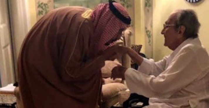 ملك السعودية يقبل يد والد الوليد بن طلال خلال زيارة عزاء