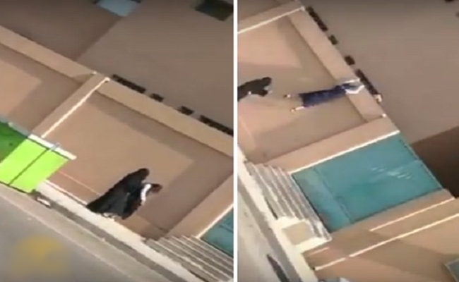 أظهر مقطع فيديو قيام فتيات سعوديات بالمرحلة الثانوية بالهرب من مدرستهن بالقفز من فوق السور.