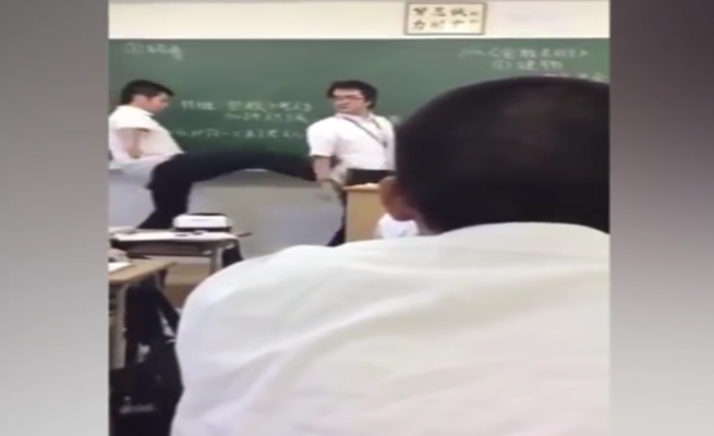 بالفيديو .. طالب ياباني يركل مدرساً داخل الفصل أمام زملائه
