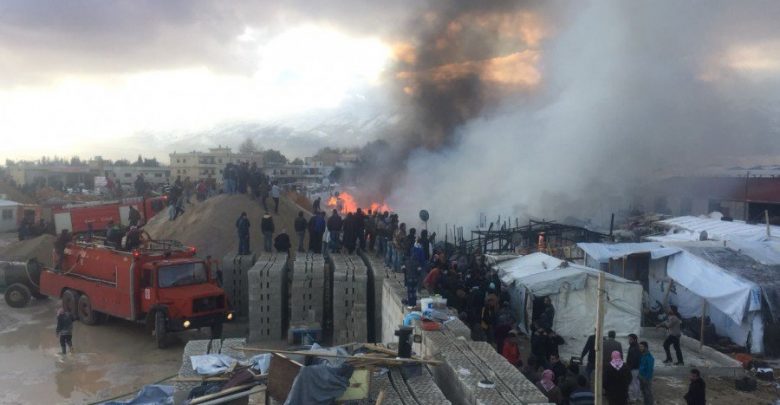 وفاة أطفال و إصابة آخرين جراء حريق ضخم في مخيم للاجئين السوريين في لبنان