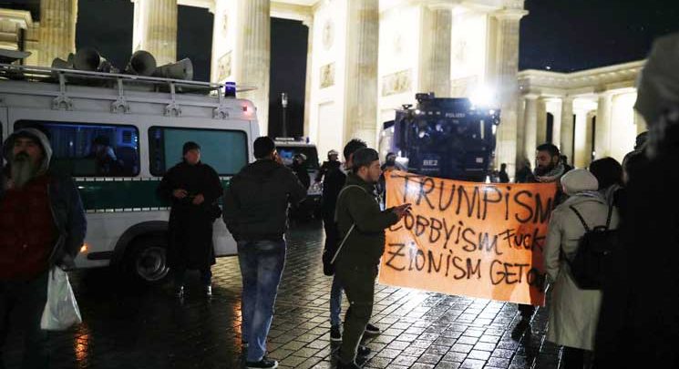 اعتقلت الشرطة الألمانية عددا من المتظاهرين، في ساعة متأخرة مساء الجمعة، عقب احتجاجات أمام بوابة براندنبورغ التاريخية بوسط برلين، تنديدا بإعلان الولايات المتحدة اعترافها بالقدس عاصمة لإسرائيل.