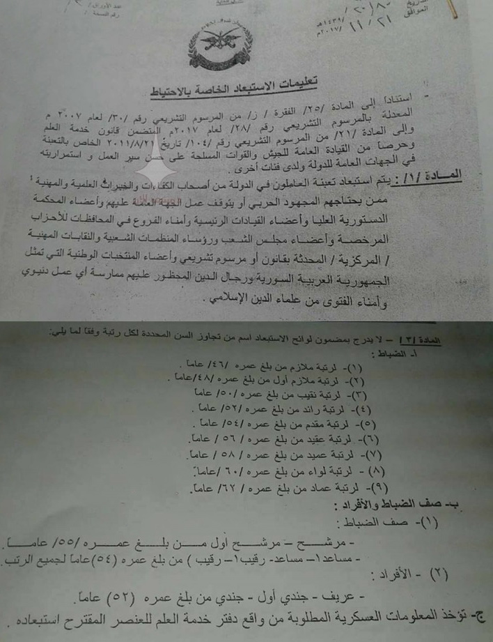 قالت وسائل إعلام موالية، إن تعديلات جديدة صدرت حول الاستبعاد الخاص بالإحتياط (في الجيش النظامي).
