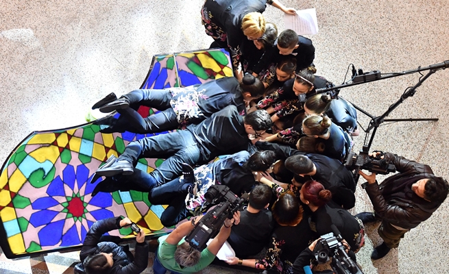 عزف ثمانية عشر مراهقاً بوسنياً وأستاذاهم للموسيقى على آلة #البيانو نفسها في وضعيات مختلفة جلوساً أو وقوفاً أو القرفصاء لتحطيم رقم قياسي في #موسوعة _غينيس .