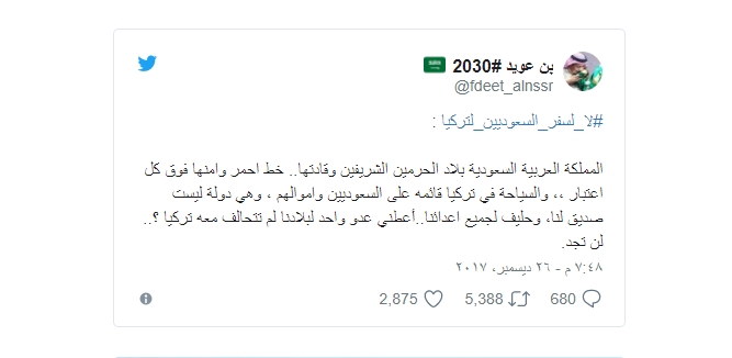 دعوات سعودية عبر تويتر لـ ” مقاطعة السياحة في تركيا “