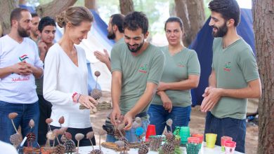 أسماء الأسد تزور مخيماً لأبناء قتلى ميليشيات زوجها في ريف اللاذقية ( صور )