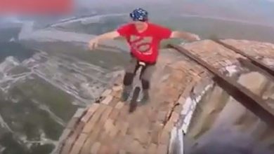 بالفيديو .. شاب يقود عجلة أحادية فوق حافة مدخنة عملاقة
