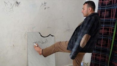 إدلب : معلم بلا يدين ينير مستقبل طلابه بأنامل قدميه