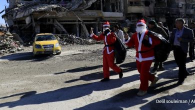 فرانس برس : بابا نويل يقرع الأجراس و يوزع الهدايا للأطفال في الرقة .. و أصوات التراتيل تعود إلى الكنائس ( فيديو )