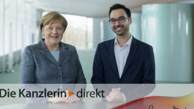 مذيع في تلفزيون بشار الأسد وصل إلى ألمانيا كلاجئ أواخر 2015 يجري مقابلة مع ميركل