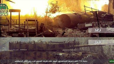 أحرار الشام : تدمير دبابة ” T72 ” على طريق العدوي في دمشق ( فيديو )