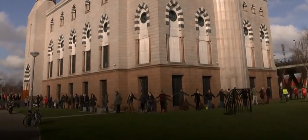 هولندا : مسيحيون و يهود و ملحدون يشكلون سلسلة بشرية حول مسجد في روتردام تعبيراً عن تضامنهم ( فيديو )