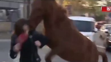 حصان غاضب يتسبب بالهلع في شوارع اسطنبول ( فيديو )