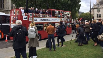 ” الحرية للمعتقلين ” .. صور المغيبين في سجون بشار الأسد تجوب شوارع لندن