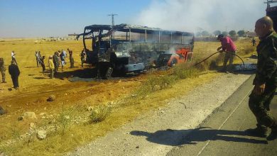 أنباء متضاربة حول الأسباب .. حافلة ركاب تدهس ” بيك آب ” و تقتل عدداً من عناصر الجيش النظامي على طريق ” أثريا – خناصر ” .. ( فيديو + صور )