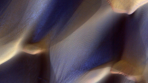 ويبدأ الجليد بالتصدع ويتبخر بقدوم الربيع. ثم يغيّر المريخ مظهره مجددا. لكن درجة الحرارة في قطبه الجنوبي تبقى متدنية، لذلك يدوم الشتاء في تلك المنطقة طيلة السنة.