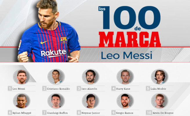 اختير الأرجنتيني #ليونيل_ميسي مهاجم نادي #برشلونة الإسباني كأفضل لاعب في العالم عن العام المنصرم 2017 في استفتاء نظمته صحيفة “ماركا” االإسبانية في قائمة تضمنت 100 لاعب يمثلون الأندية في القارة الأوروبية .