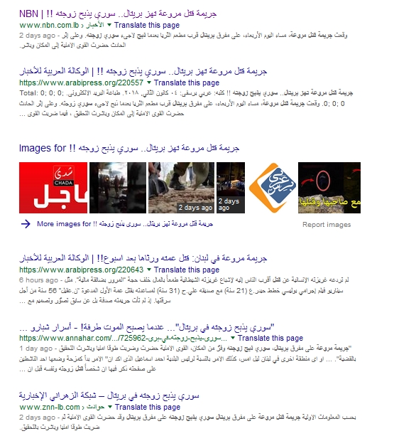 حقيقة خبر ” سوري يذبح زوجته في بريتال ( لبنان ) “