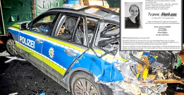وقالت صحيفة “بيلد” الألمانية، يوم السبت (6/1)، بحسب ما ترجم عكس السير، إن الحادث الذي وقع في 27 كانون الأول، أسفر عن وفاة الشرطية (إيفون.ن)، البالغة من العمر 23 عاماً، في المقعد الخلفي للسيارة.