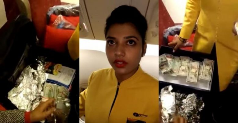 تداول رواد مواقع التواصل الاجتماعي مقطع فيديو للحظة اعتقال مضيفة طيران هندية حاولت تهريب مبلغ نصف مليون دولار أميركي لخارج البلاد خلال رحلة جوية.