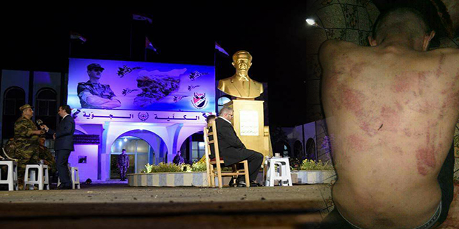 نشر مراسل تلفزيون بشار الأسد في حلب، شادي حلوة، صورة لعنصر من ميليشيات النظام المحلية التي يطلق عليها الموالون اسم “الجيش العربي السوري”، تظره وقد تعرض لضرب مبرح على يد دورية لأحد الأفرع الأمنية بحلب.