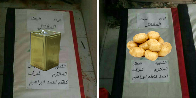 قتلى ” الجيش العربي السوري ” يتحولون لأكياس بطاطا و تنكات زيت .. حلب : 3 آلاف رسم مرور كل ” شهيد ” من حاجز أبو جعفر
