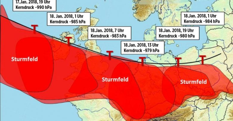 بدورها، حذرت “دائرة الارصاد الجوية الالمانية” فى راينلاند بالاتينات وهيس من هبوب عاصفة قوية يوم الخميس و في الفترة بين الساعة 7 حتى الساعة 22:00 تبلغ قوة العاصفة ثلاثة (أعلى مستوى هو أربعة)، كما يوجد تحذيرات بحدوث إعصار في كل من ساكسونيا وساكسونيا أنهالت وتورينغن.