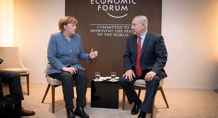 نتنياهو يحاول إقناع ميركل في دافوس بضرورة تعديل الاتفاق النووي مع إيران