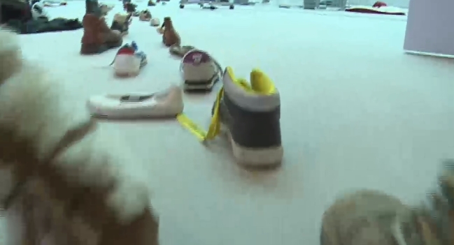 معرض لـ ” أحذية اللاجئين ” في البرلمان الأوروبي ( فيديو )