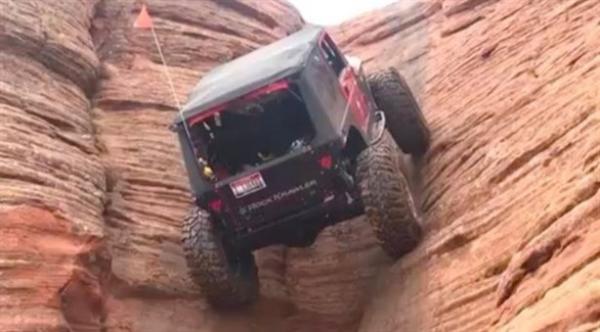 سيارة جيب تتحدى الجاذبية و تسير رأسياً على قمة جبل ! ( فيديو )