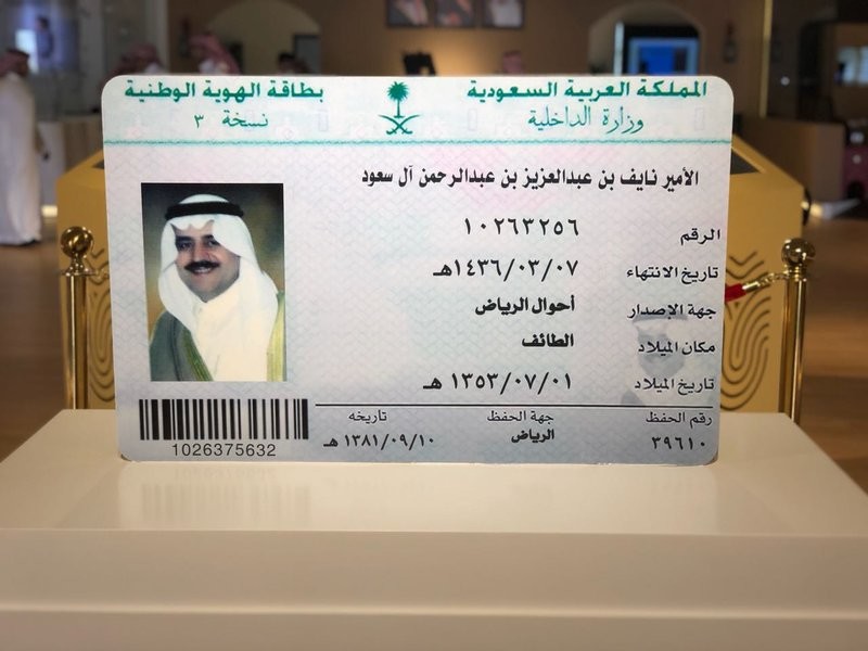 عرضت الأحوال المدنية السعودية صورة لبطاقة الهوية الوطنية للأمير نايف بن عبدالعزيز، عبر مجسم بارز في معرضها بمهرجان الجنادرية.