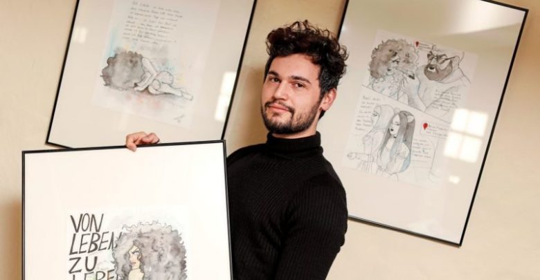 وقالت صحيفة “نويه أوسنابروكر تسايتونغ“، الثلاثاء، بحسب ما ترجم عكس السير، إن لوحات الشاب السوري، طارق السعدي (25 عاماً)، هي من روايته المصورة “من حياة إلى حياة”.