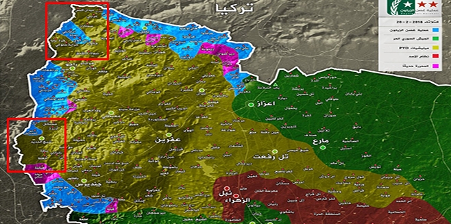 ” تقدم جديد باتجاه التطويق الكامل ” .. عفرين : القوات التركية و الجيش الحر يسيطران على كامل الشريط الحدودي مع كليس