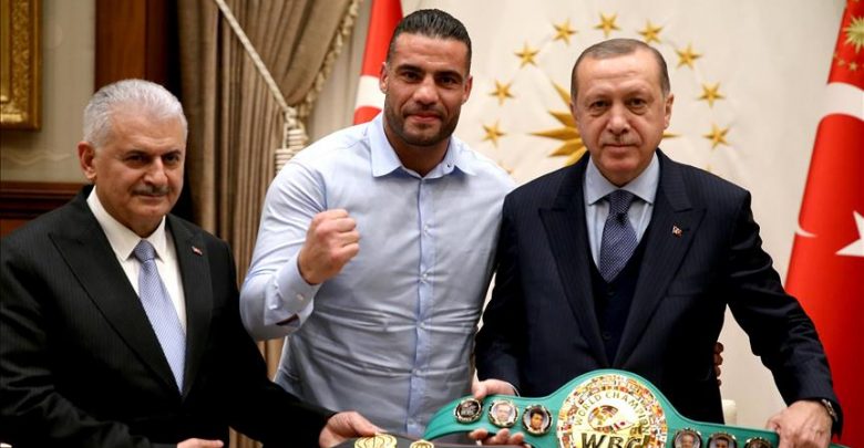 موال للنظام و جيشه .. ملاكم ألماني سوري يهدي أردوغان حزاماً فاز به شكراً منه على ” التضحيات المقدمة للسوريين ” !