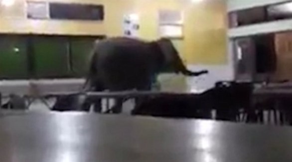 في ماليزيا .. فيل يقتحم مقصفاً مدرسياً و يفزع الطلاب ! ( فيديو )